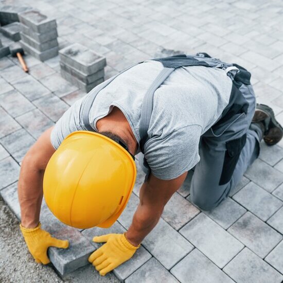 Мы производим укладку тротуарной плитки на объекте заказчика
